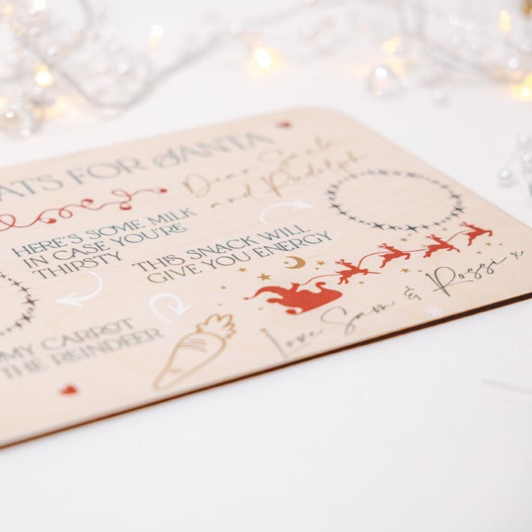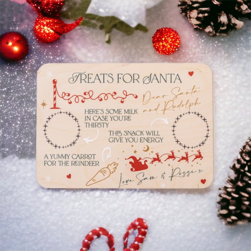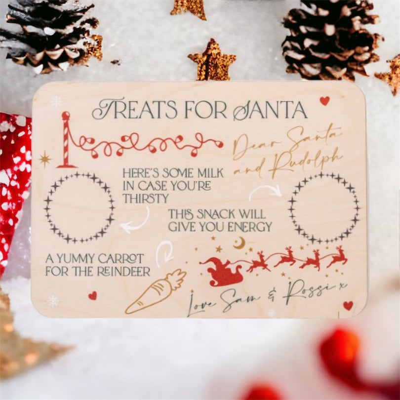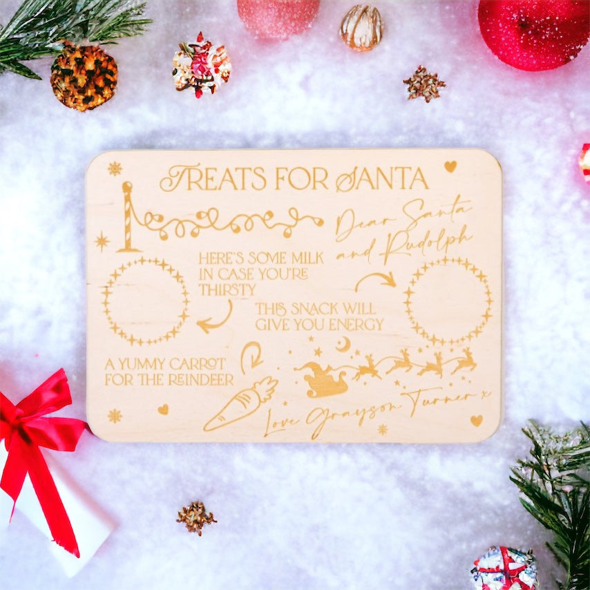 Our children’s Christmas collection is filled with personalised gifts and festive décor designed to spark joy and wonder. From engraved keepsakes and name baubles to custom treat boards and Santa signs, each piece is made with care to create memories they’ll cherish year after year.