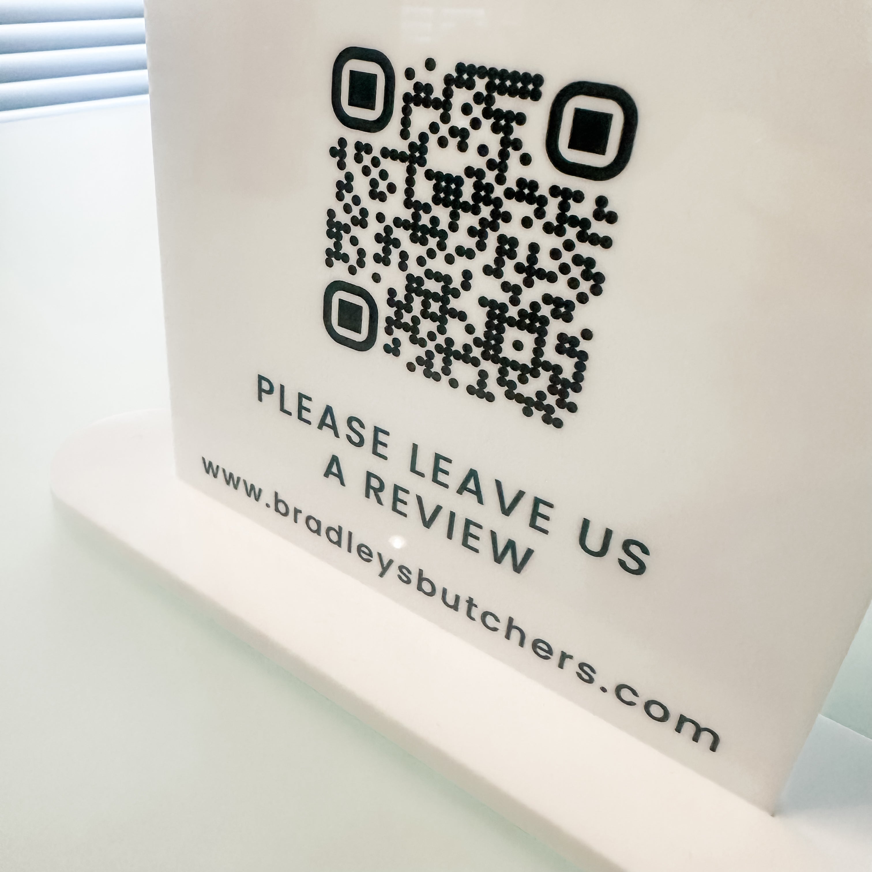 Luxury Dome Top QR Code Acrylic Business Sign - Custom Branded Display for Business & Events