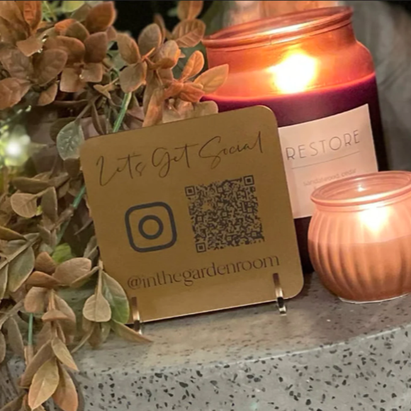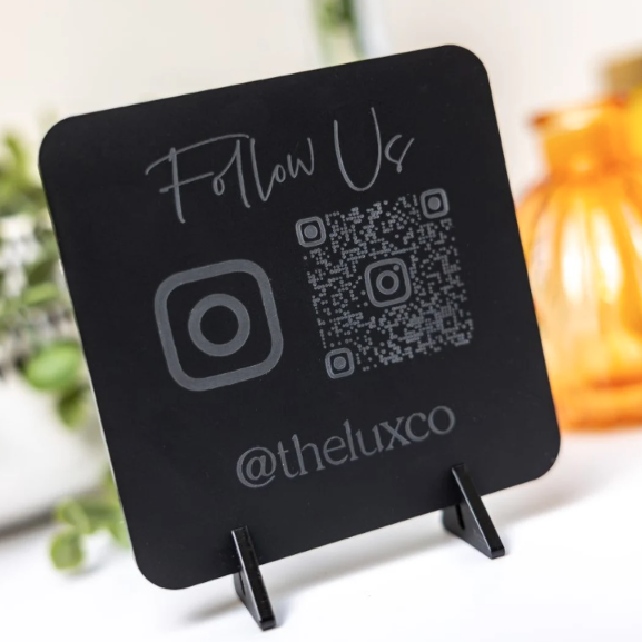 Luxury QR Code Social Media Engraved Sign - Follow Us Display - Personalised Design