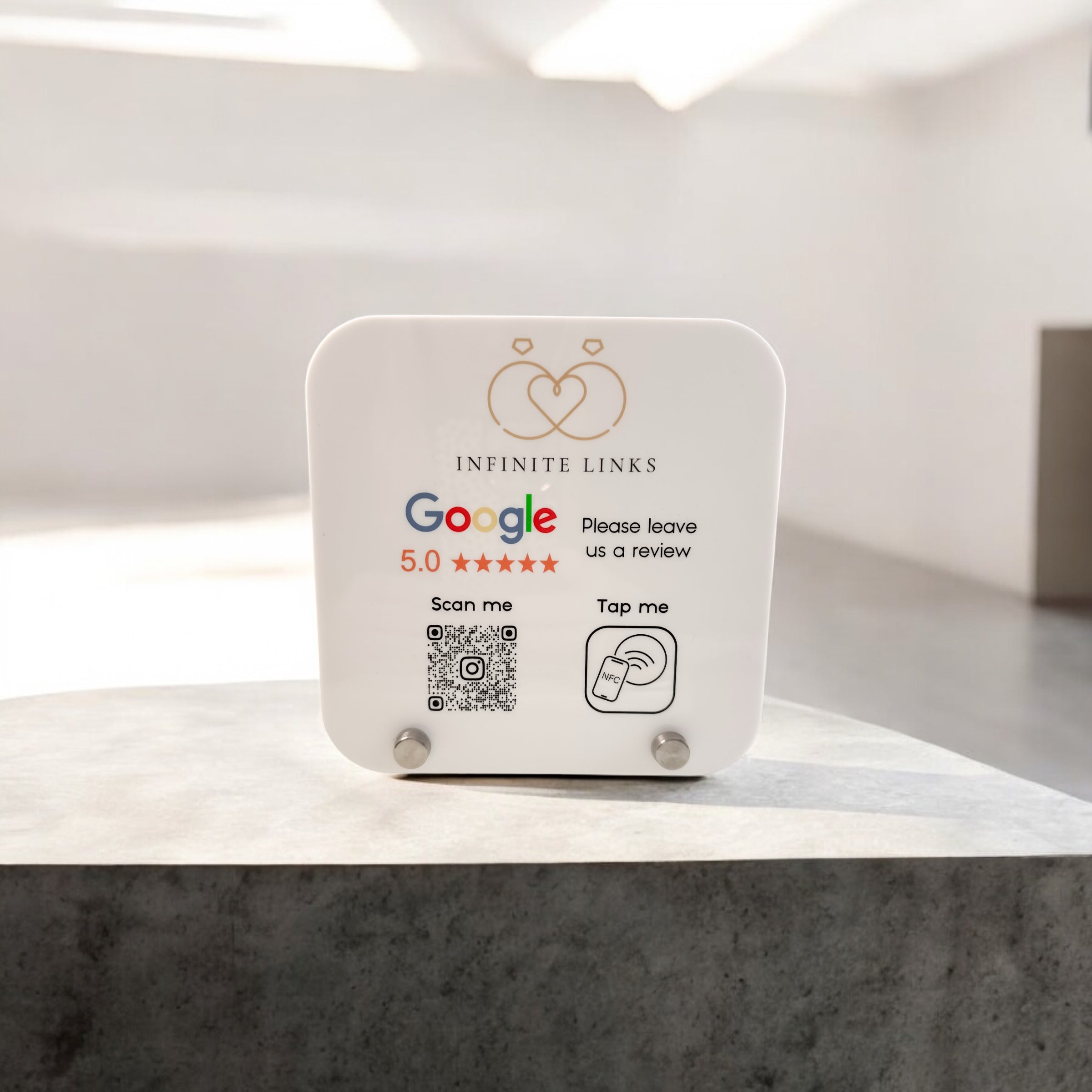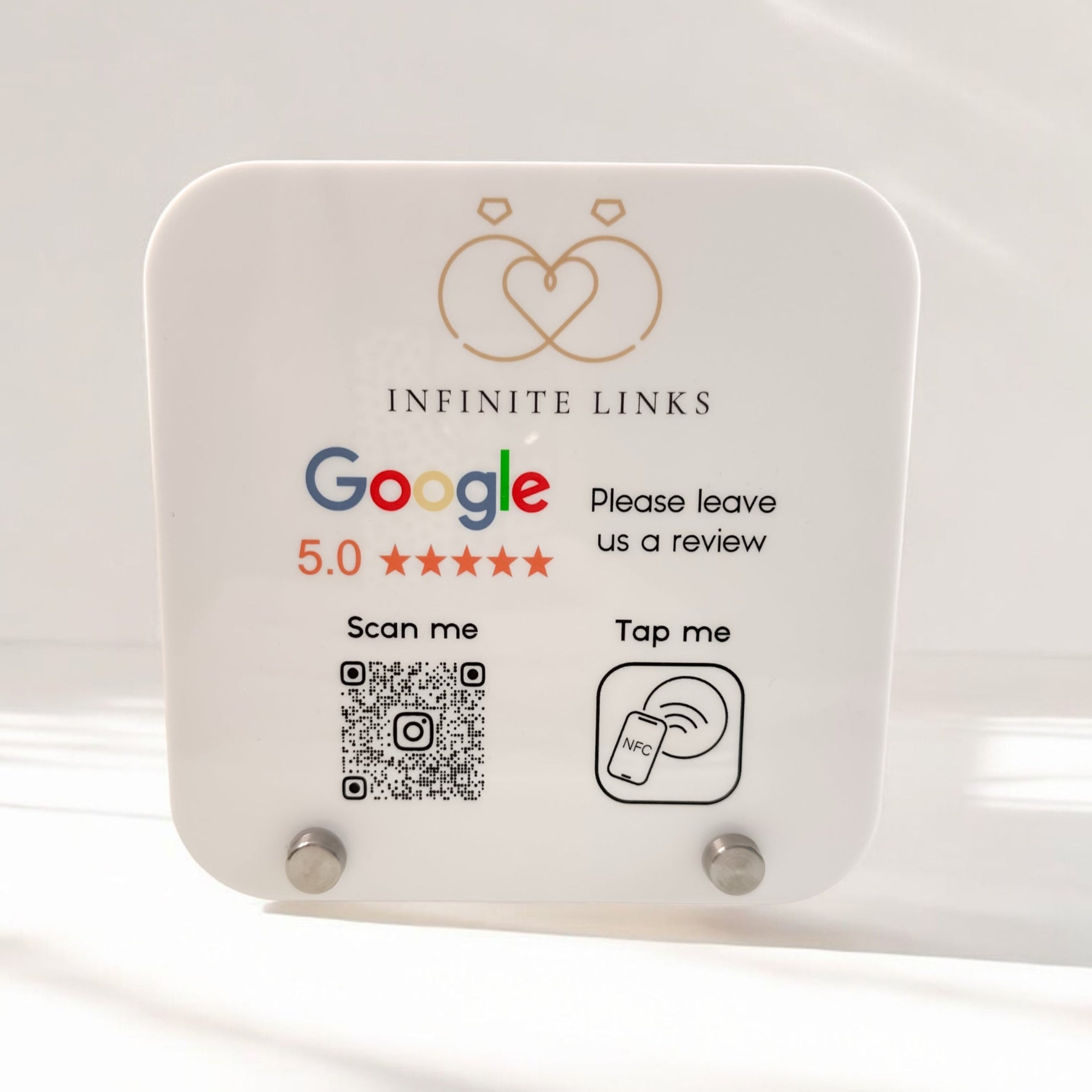 Luxury QR & NFC Review Sign – Contactless Customer Feedback Display by PrintLux — crafted from Beige Acrylic, Black Acrylic, White Acrylic and available in a range of sizes.