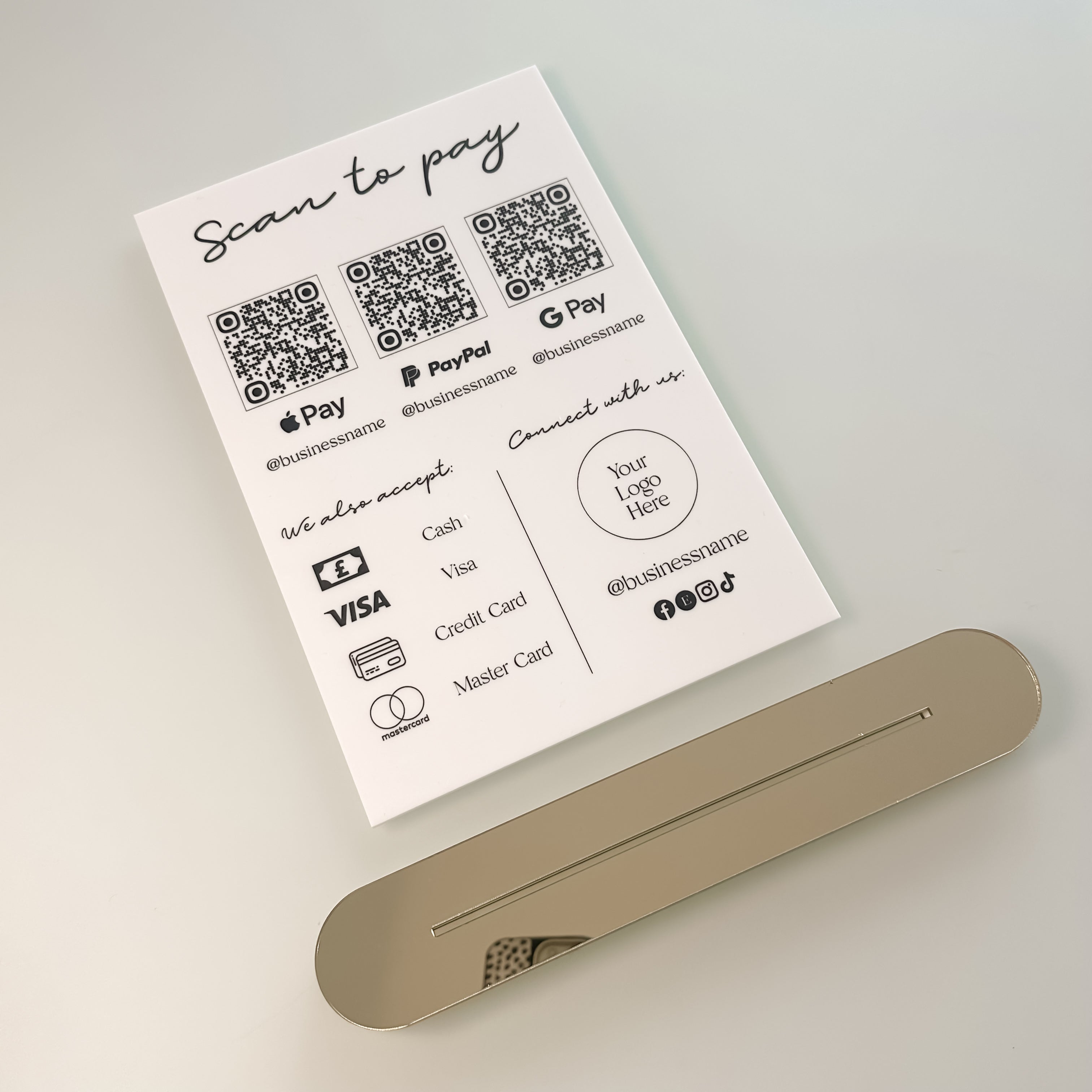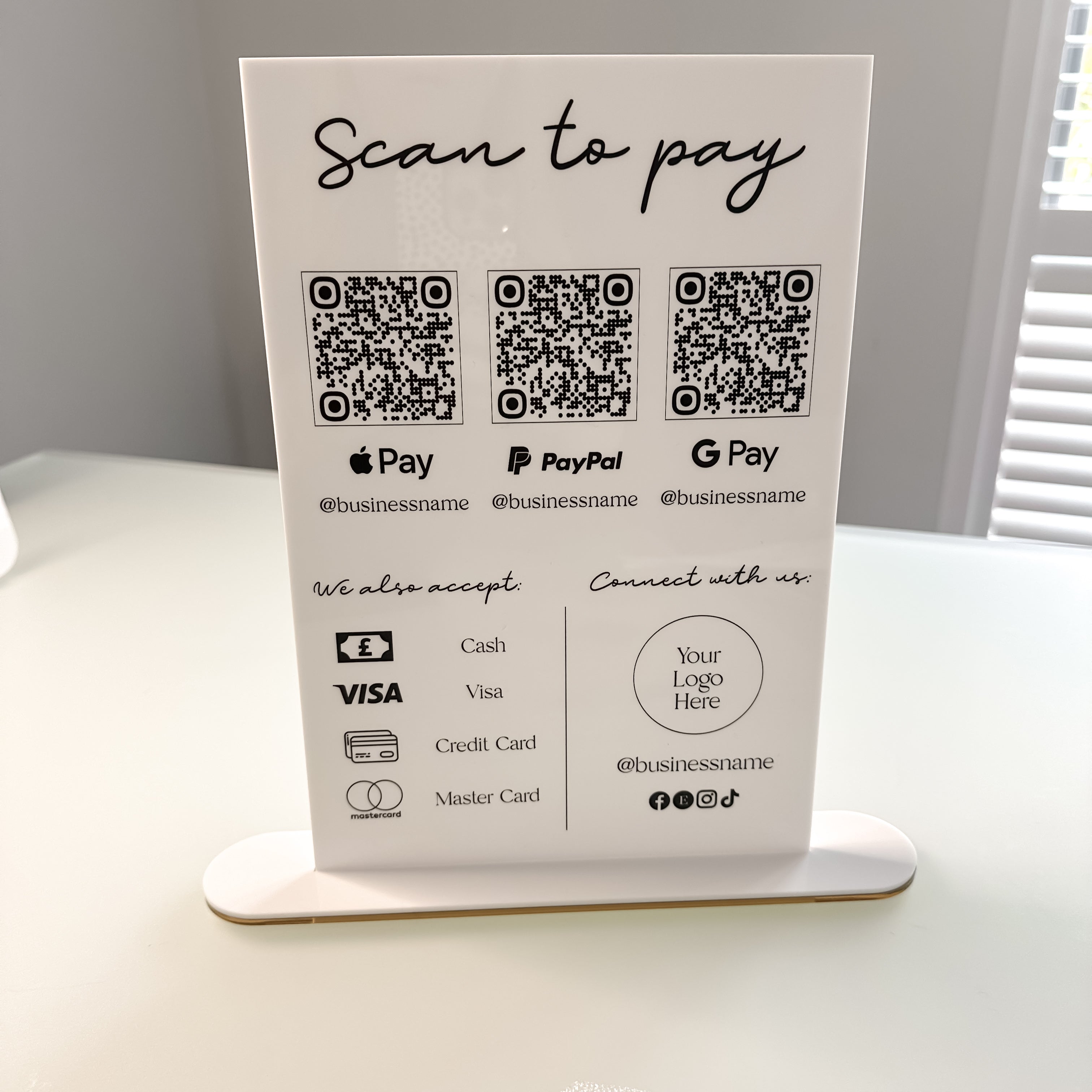 Luxury Scan to Pay Acrylic QR Code Sign - Contactless Payment Display with Luxury Base - Personalised Design