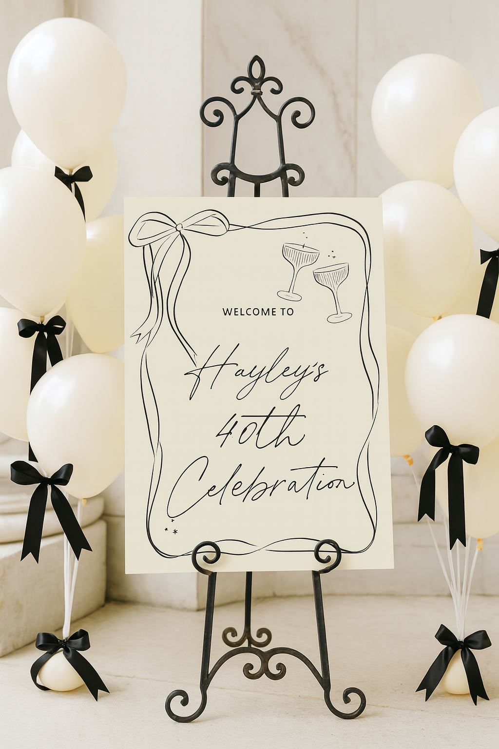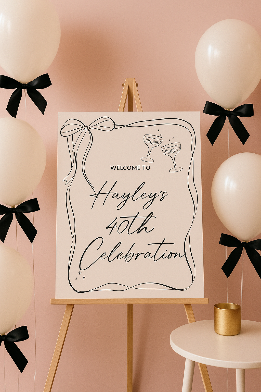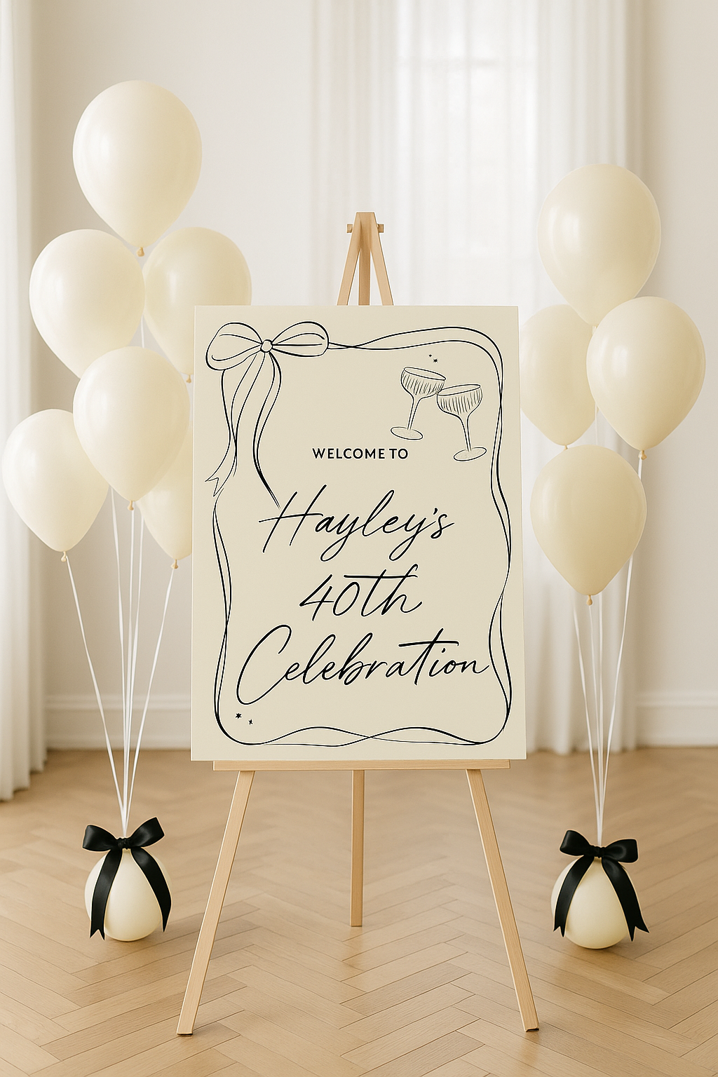 Luxury Personalised Bow Event Sign - 40th Birthday Personalised Welcome Sign