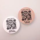 Luxury Luxury Acrylic QR Scan to Order Sign - UV Printed Contactless Ordering Display - Personalised Design by PrintLux — crafted from Beige Acrylic, Black Acrylic, White Acrylic and available in Large 65mm, Small - 45mm.
