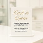 Cash is King Business Sign- Acrylic Counter Sign and Wall Sign