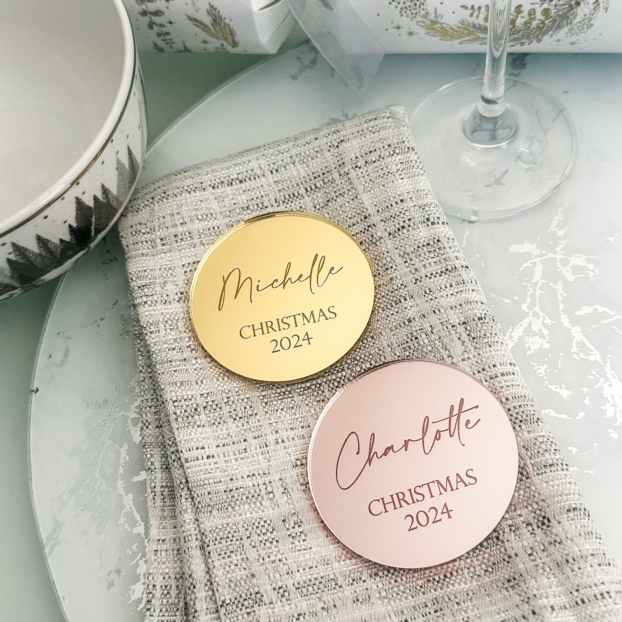 Luxury Luxury Christmas Dinner Personalised Place Names by PrintLux — crafted from Clear acrylic, Frosted acrylic, Gold mirror, Rose gold mirror, Silver mirror, Wood and available in a range of sizes.