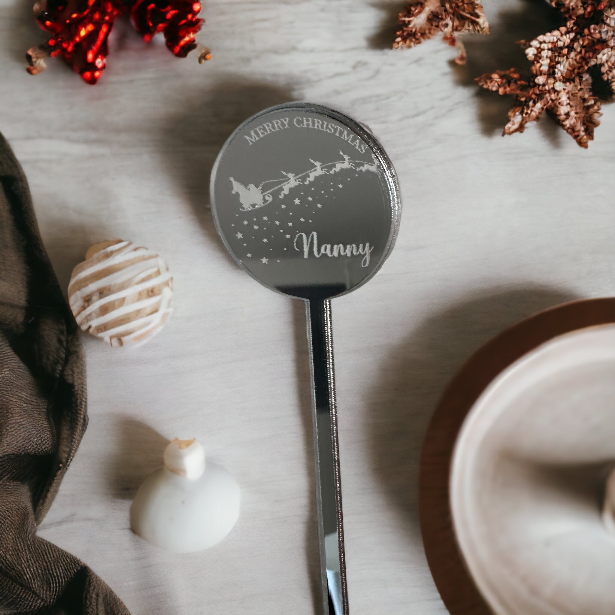 Luxury Luxury Christmas Party Personalised Drinks Stirrers by PrintLux — crafted from Clear acrylic, Frosted acrylic, Gold mirror, Rose gold mirror, Silver mirror and available in a range of sizes.