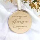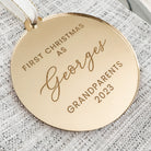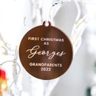 Luxury Luxury Personalised Christmas Bauble - 1St Christmas As Grandparents Personalised Bauble by PrintLux — crafted from Clear acrylic, Frosted acrylic, Gold mirror, Rose gold mirror, Silver mirror, Wood and available in 10cm, 6cm, 8cm.
