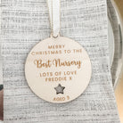 Luxury Luxury Best Nursery Christmas Bauble - Personalised Christmas Ornament by PrintLux — crafted from Clear acrylic, Frosted acrylic, Gold mirror, Rose gold mirror, Silver mirror, Wood and available in 10cm, 6cm, 8cm.