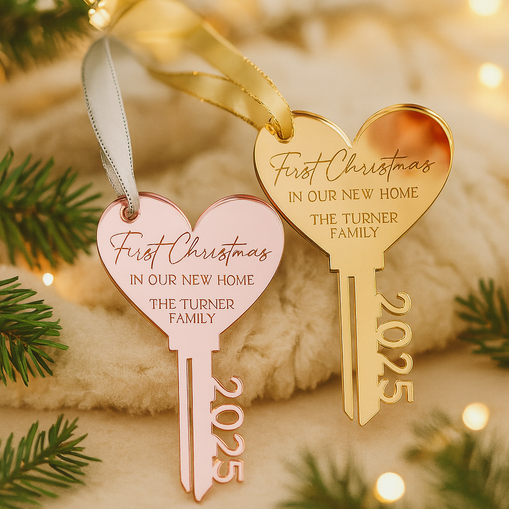 Luxury Luxury Our First Christmas Together Bauble - Personalised Couple Ornament by PrintLux — crafted from Clear acrylic, Frosted acrylic, Gold mirror, Rose gold mirror, Silver mirror, Wood and available in 10cm, 8cm.