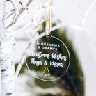 Luxury Luxury Grandparents Personalised Christmas Bauble – Personalised Personalised Christmas Ornament by PrintLux — crafted from Clear acrylic, Frosted acrylic, Gold mirror, Rose gold mirror, Silver mirror, Wood and available in 10cm, 6cm, 8cm.