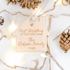 Luxury Luxury New Home Personalised Christmas Family Bauble by PrintLux — crafted from Clear acrylic, Frosted acrylic, Gold mirror, Rose gold mirror, Silver mirror, Wood and available in 10cm, 6cm, 8cm.