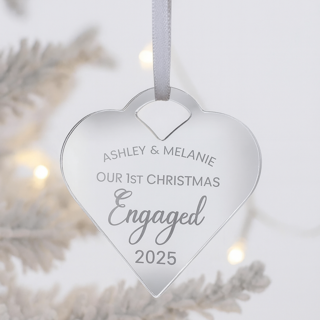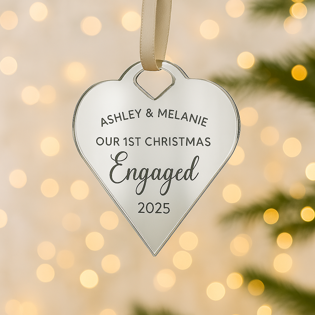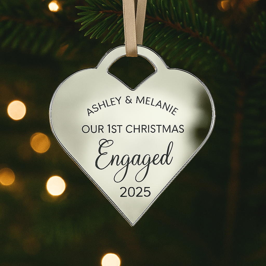 Luxury Luxury Our First Christmas Together Bauble - Personalised Couple Ornament – Personalised Personalised Christmas Ornament by PrintLux — crafted from Clear acrylic, Frosted acrylic, Gold mirror, Rose gold mirror, Silver mirror, Wood and available in a range of sizes.