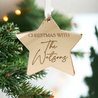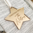 Luxury Luxury Personalised Christmas Star Family Bauble by PrintLux — crafted from Clear acrylic, Frosted acrylic, Gold mirror, Rose gold mirror, Silver mirror, Wood and available in 10cm, 6cm, 8cm.