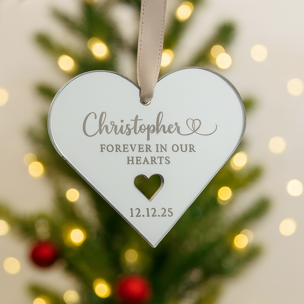 Luxury Luxury In Loving Memory Bauble - Personalised Remembrance Ornament by PrintLux — crafted from Clear acrylic, Frosted acrylic, Gold mirror, Rose gold mirror, Silver mirror, Wood and available in 10cm, 6cm, 8cm.