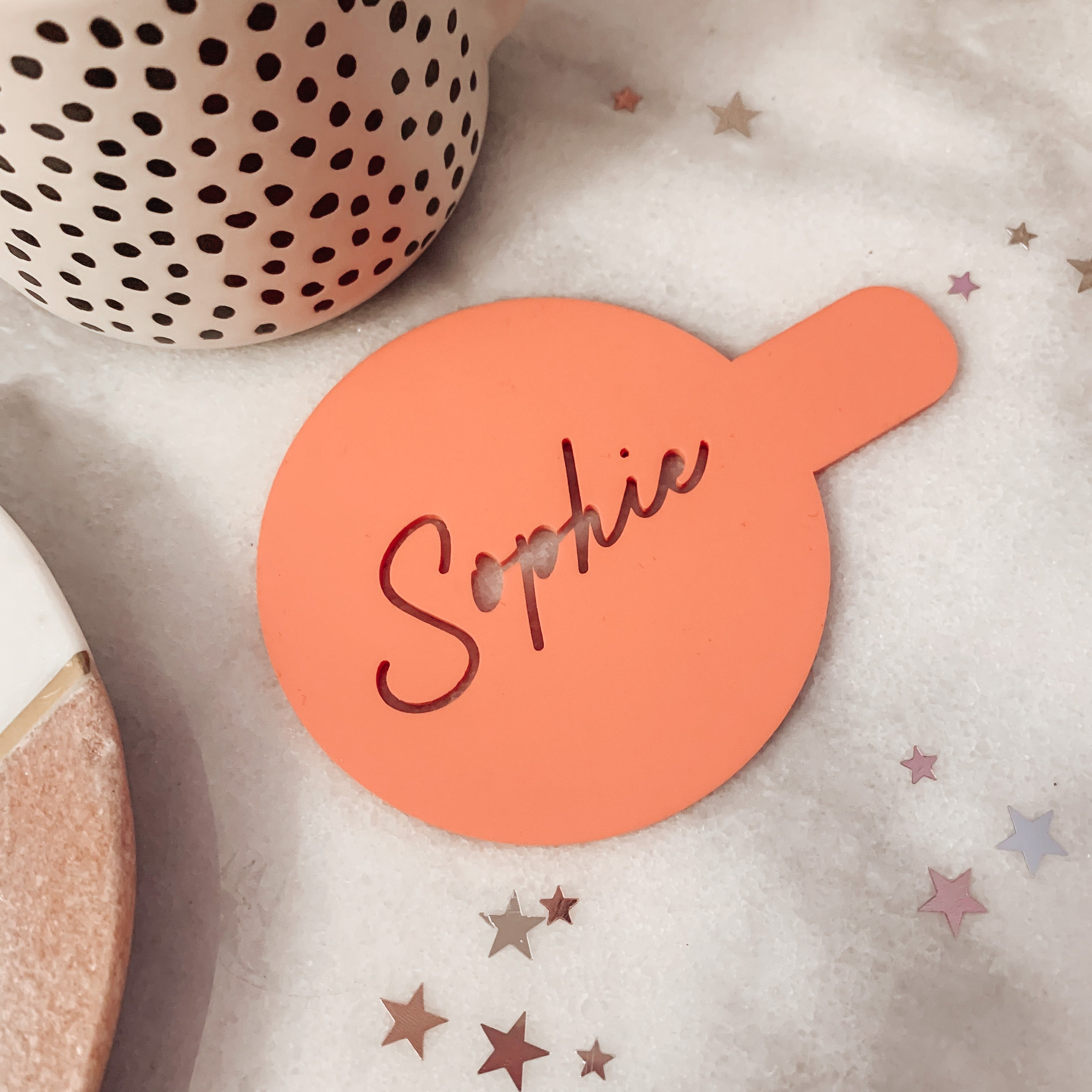 Luxury Luxury Personalised Name Coffee Stencil Gift by PrintLux — crafted from Beige Acrylic, Black Acrylic, Navy Acrylic, Pink Acrylic, White Acrylic and available in a range of sizes.