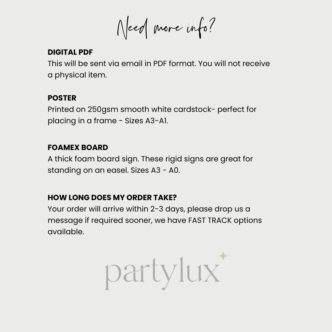 From sleek photo-quality posters to rigid display boards in Foamboard, Eco Board, or Dibond, every piece is made to order in our UK studio using high-definition printing and precision cutting. Ideal for retail, exhibitions, weddings, and signage of every scale.