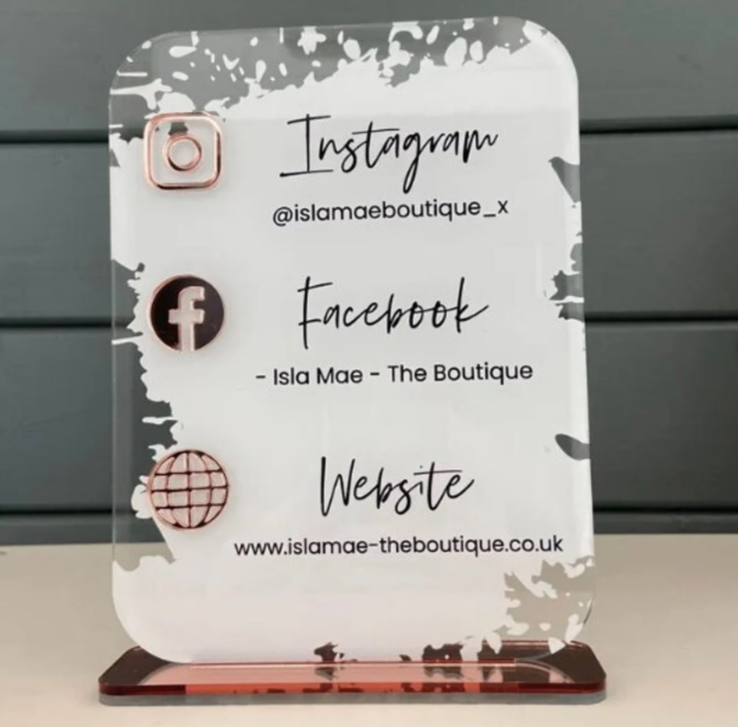 Luxury Social Media Acrylic Sign for Business – A5 with Mirror Icons & Stand
