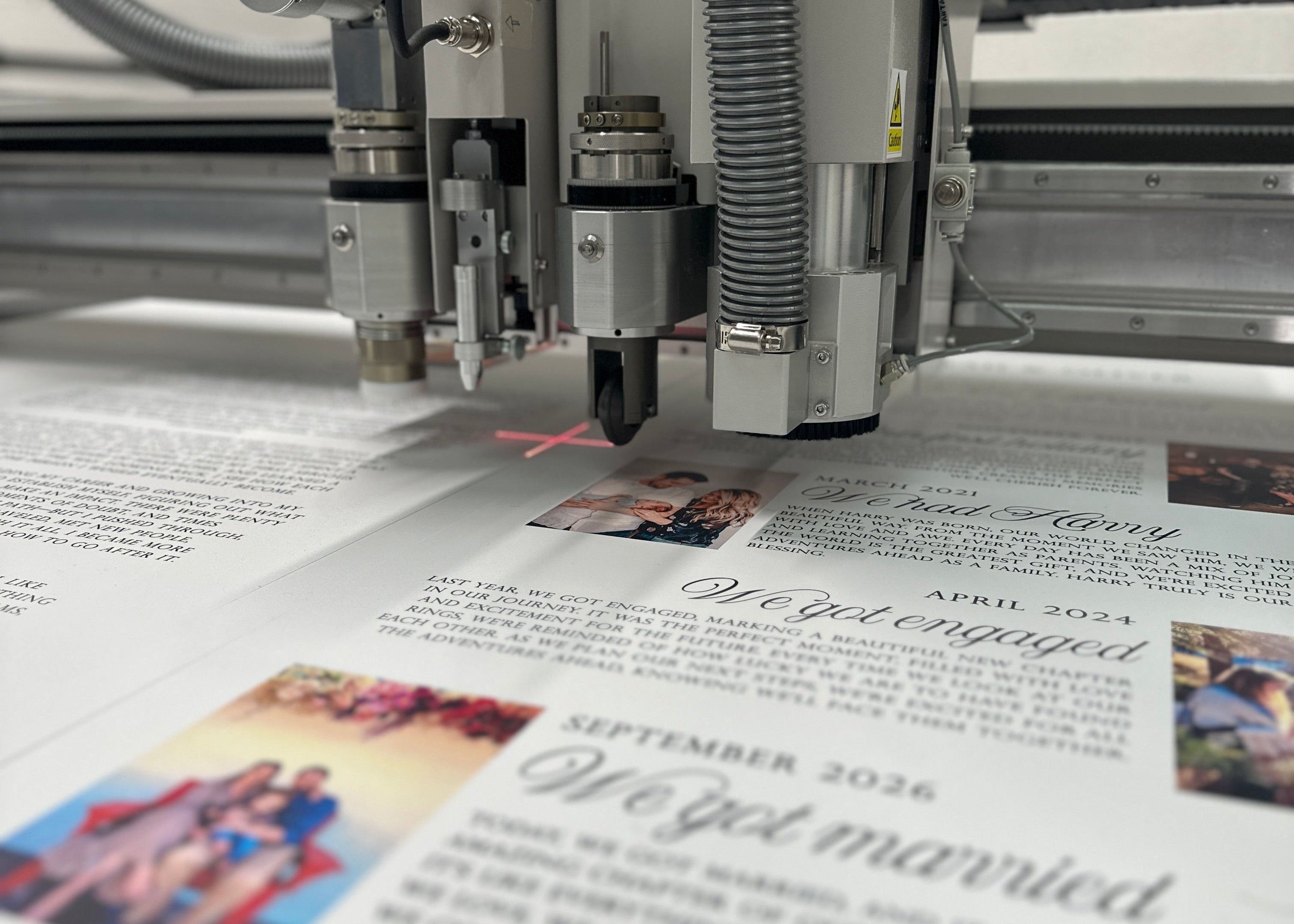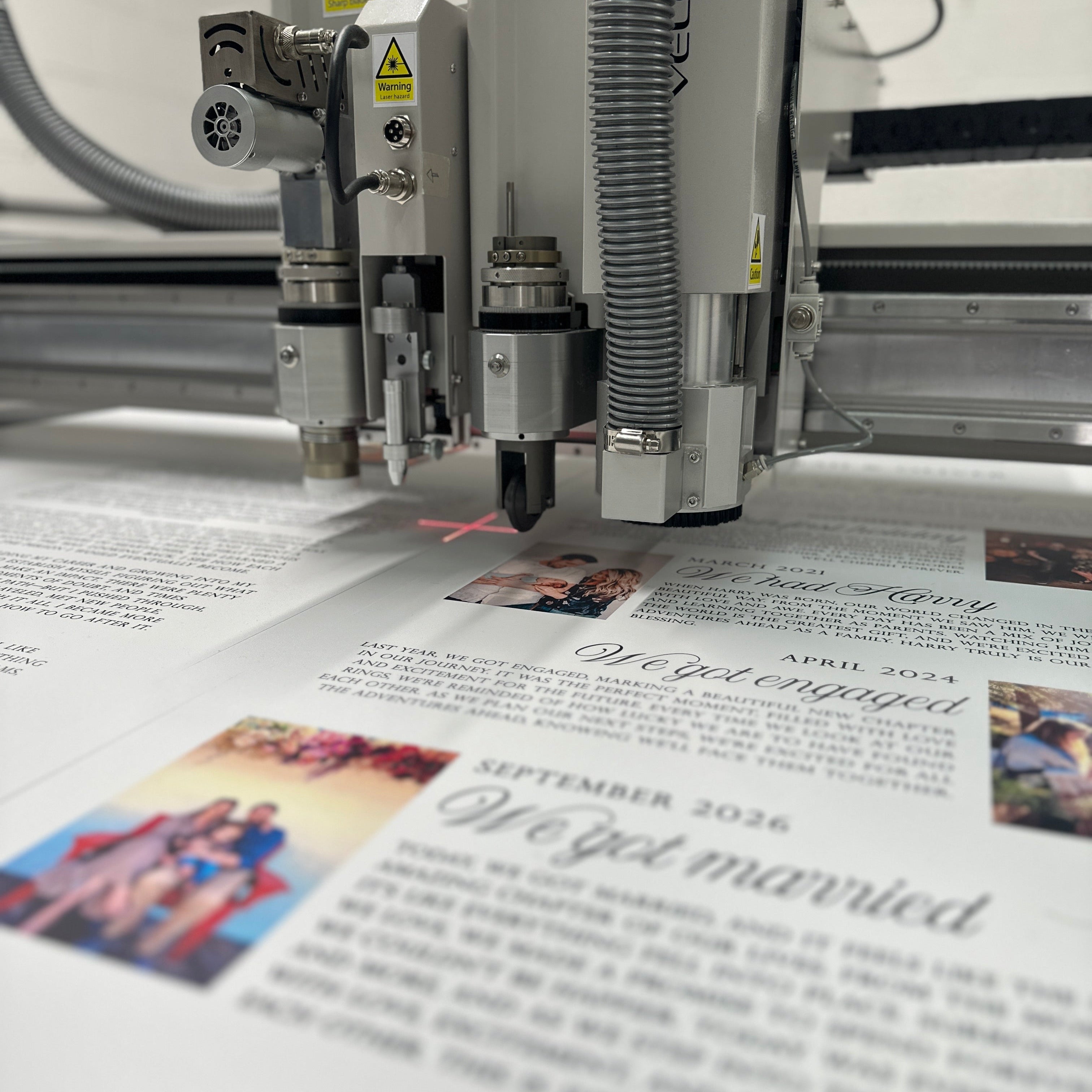 Our printing process is the first step in creating your custom wedding signage and accessories. Using high-quality printing machines, we ensure your design is printed with precision and accuracy. The result is a flawless, crisp finish that perfectly captures your vision for your special day.