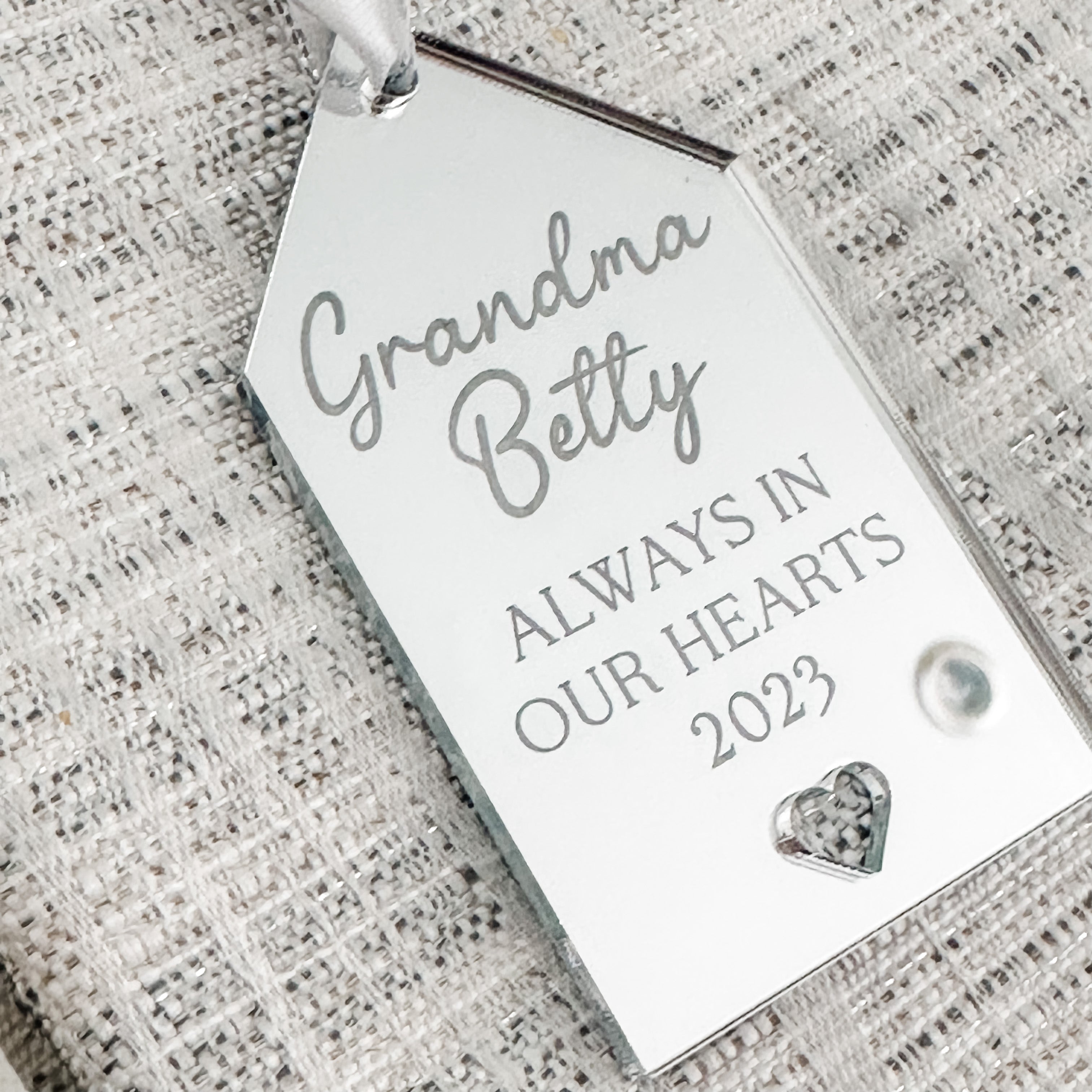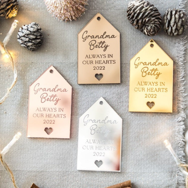 Luxury Luxury Always In Our Hearts Personalised Keepsake by PrintLux — crafted from Bronze mirror, Clear acrylic, Frosted acrylic, Gold mirror, Rose gold mirror, Silver mirror, Wood and available in 10cm, 8cm.