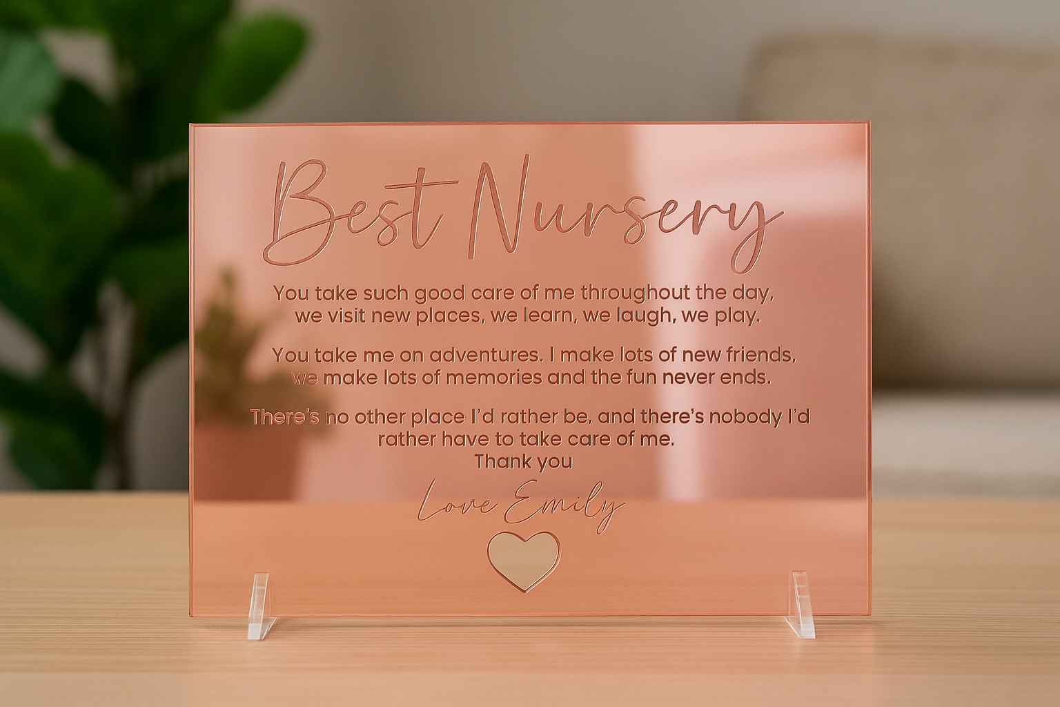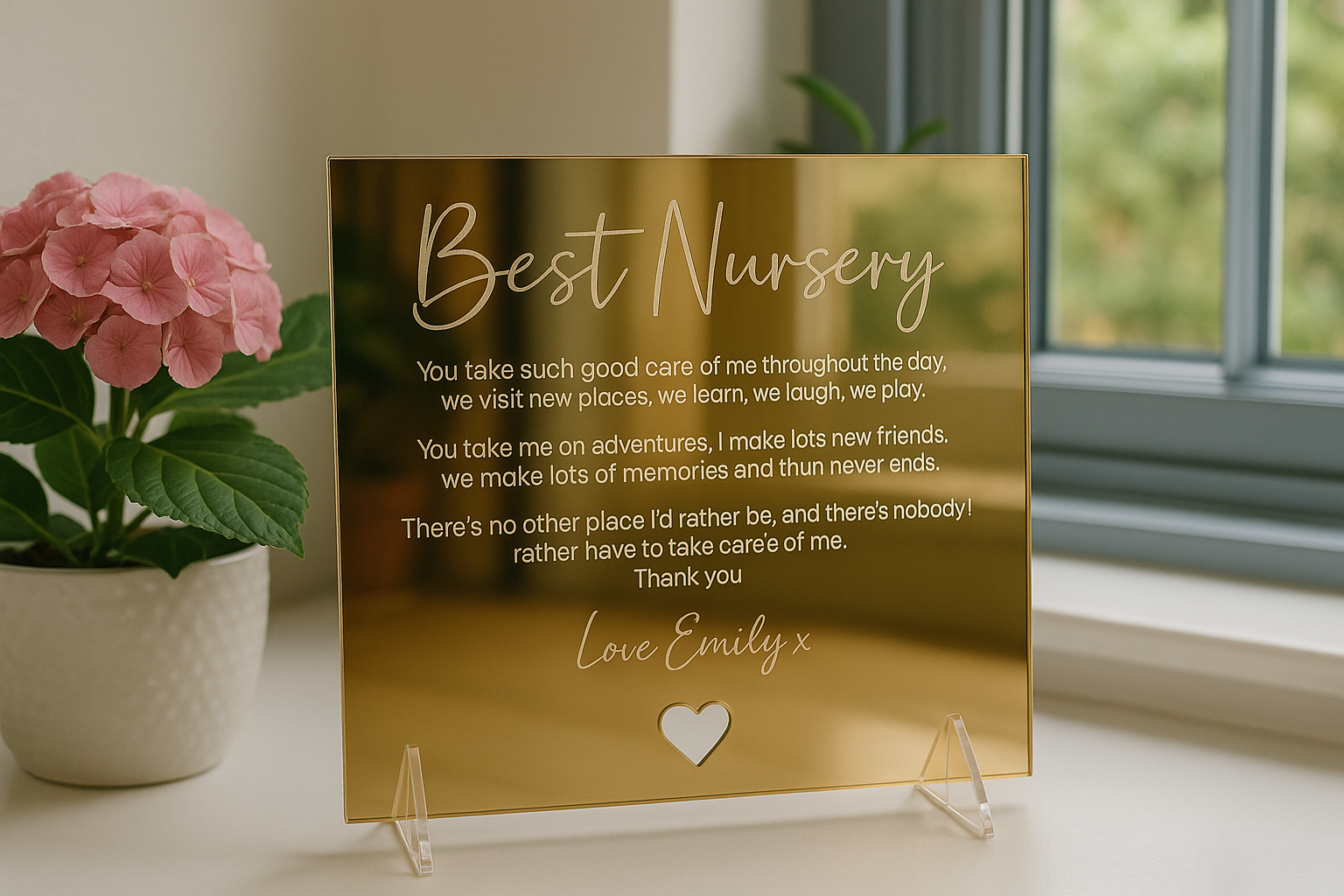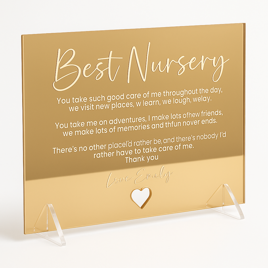 Luxury Luxury Best Nursery Luxury Personalised Mirror Card by PrintLux — crafted from Clear acrylic, Frosted acrylic, Gold mirror, Rose gold mirror, Silver mirror, Wood and available in a range of sizes.