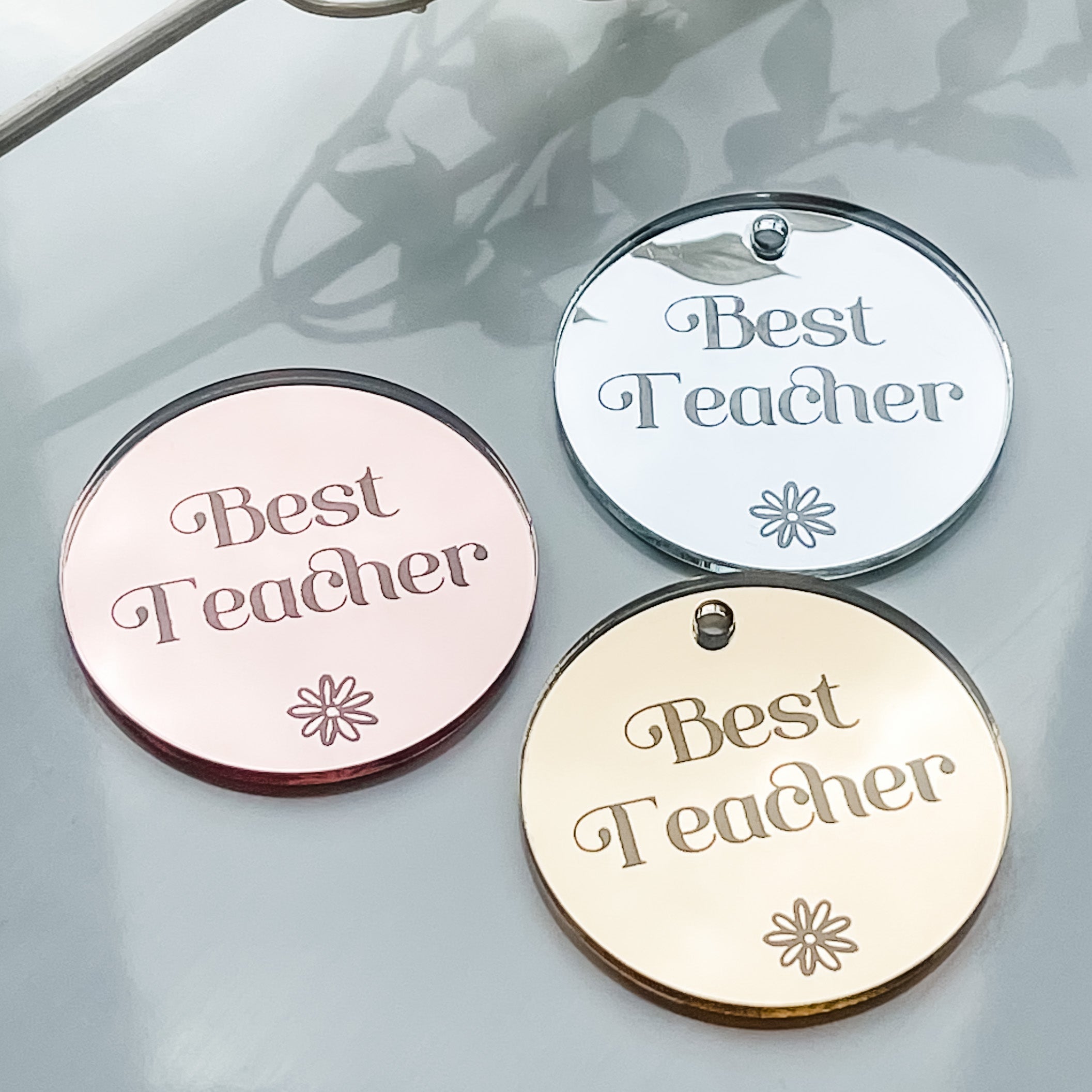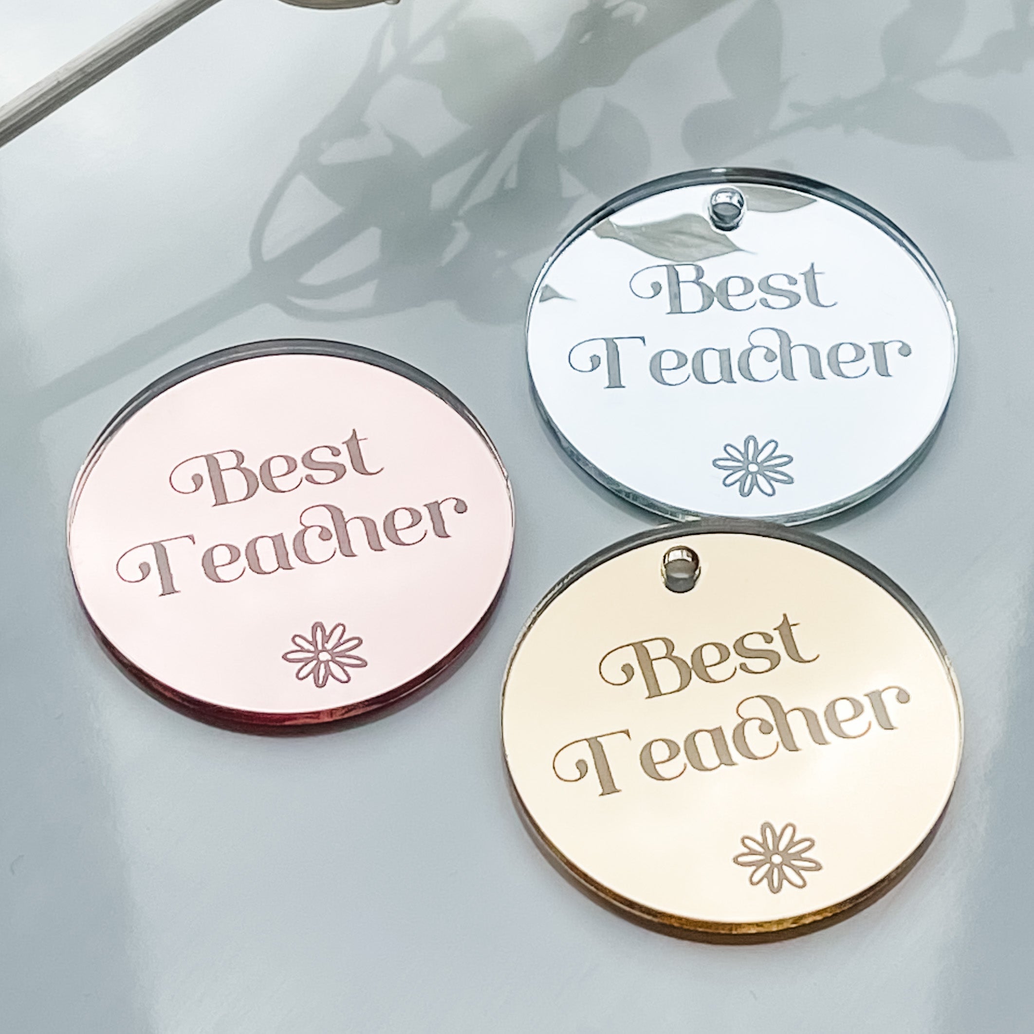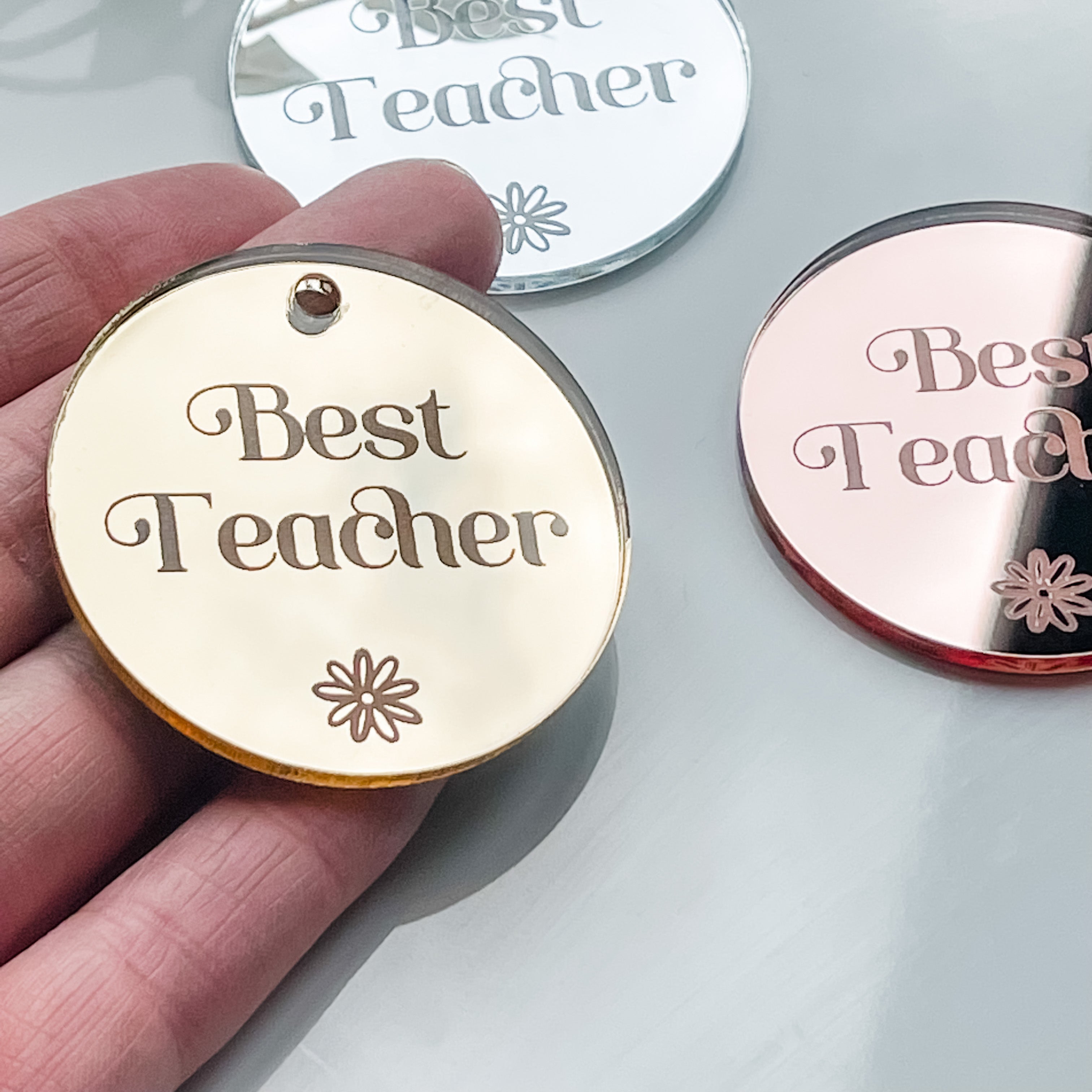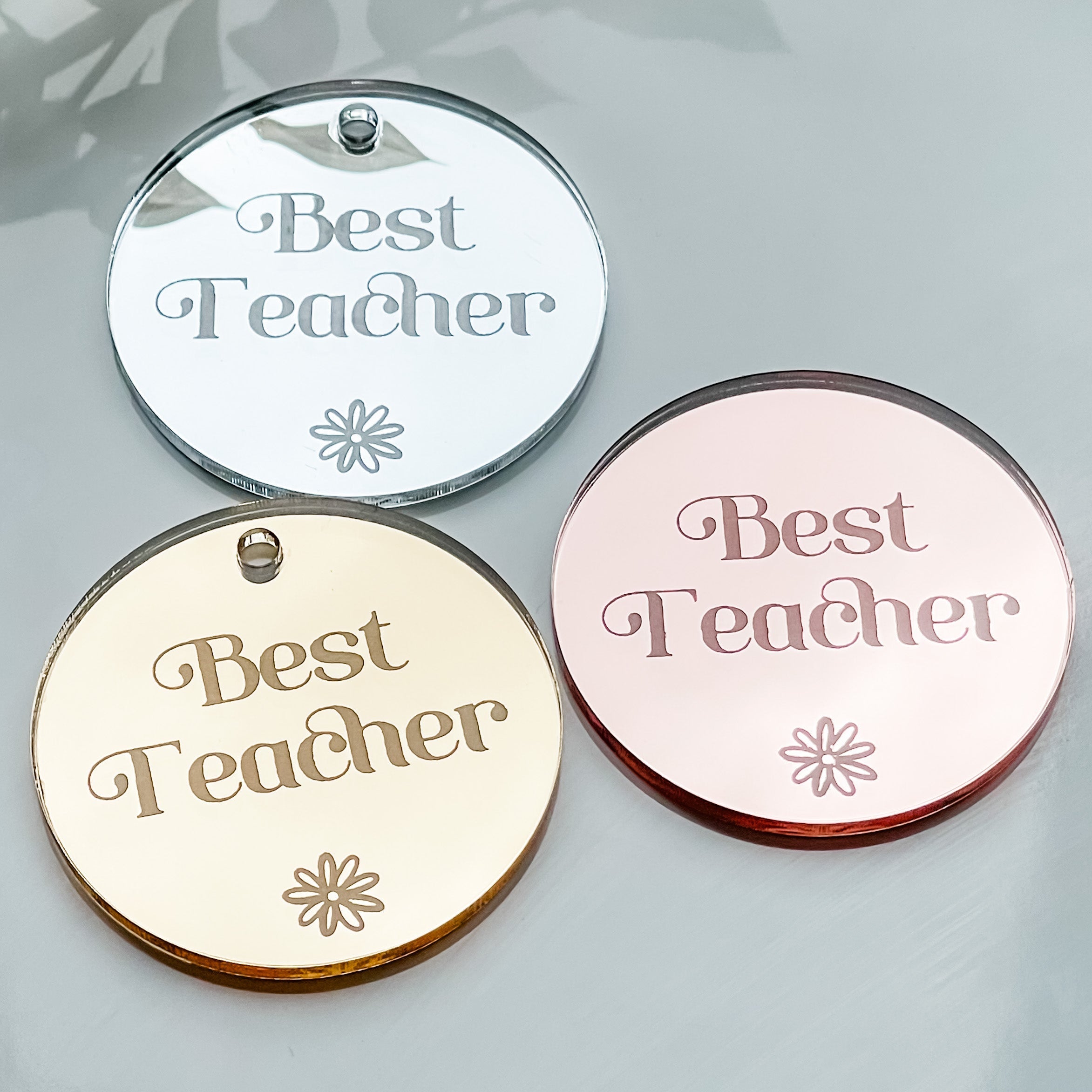 Luxury Luxury Best Teacher Mirror Cake Charm, Cupcake Topper or Gift Tag – Personalised Design by PrintLux — crafted from Clear Acrylic, Frosted Acrylic, Gold Mirror, Rose Gold Mirror, Silver Mirror, Wood and available in a range of sizes.