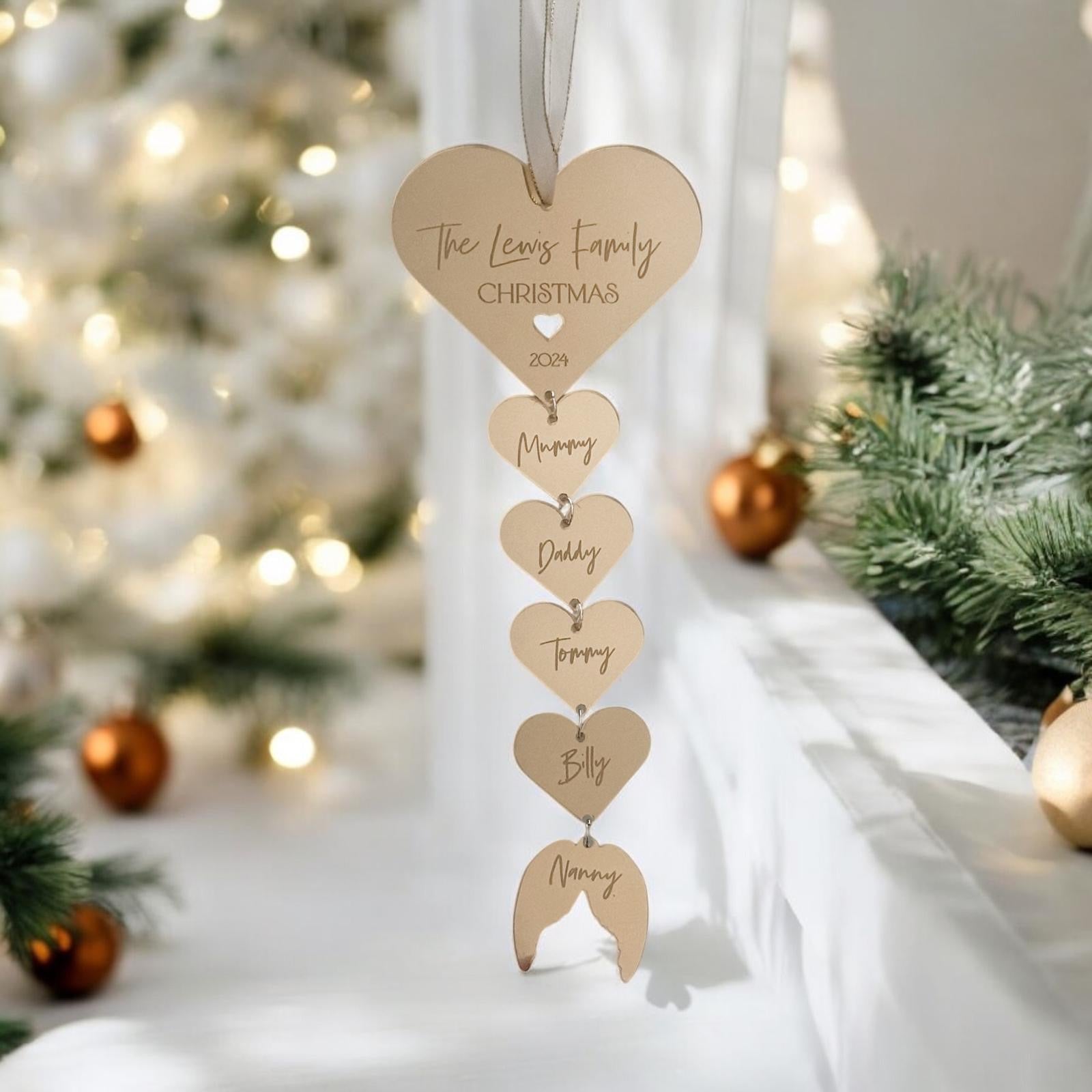 Luxury Family Christmas Hanging Heart Decoration – Personalised Design