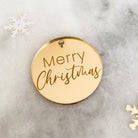 Luxury Luxury Merry Christmas Mirror Cupcake Topper, Cake Charm, or Gift Tag by PrintLux — crafted from Clear Acrylic, Frosted Acrylic, Gold Mirror, Rose Gold Mirror, Silver Mirror, Wood and available in a range of sizes.