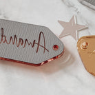 Luxury Raksha Bandhan Bead, Rakhi Bracelet Charm Personalised Rakhi Beads, Custom Tags, Brother, Sister, Rakhi beads, Handmade by PrintLux — crafted from Clear Acrylic, Frosted Acrylic, Gold Mirror, Red Mirror, Rose Gold Mirror, Silver Mirror, Teal Mirror, Wood and available in a range of sizes. Personalisation and colour options include Green, Grey, Grey/ Black Marble, Matt Black, Navy, Teal Frosted.