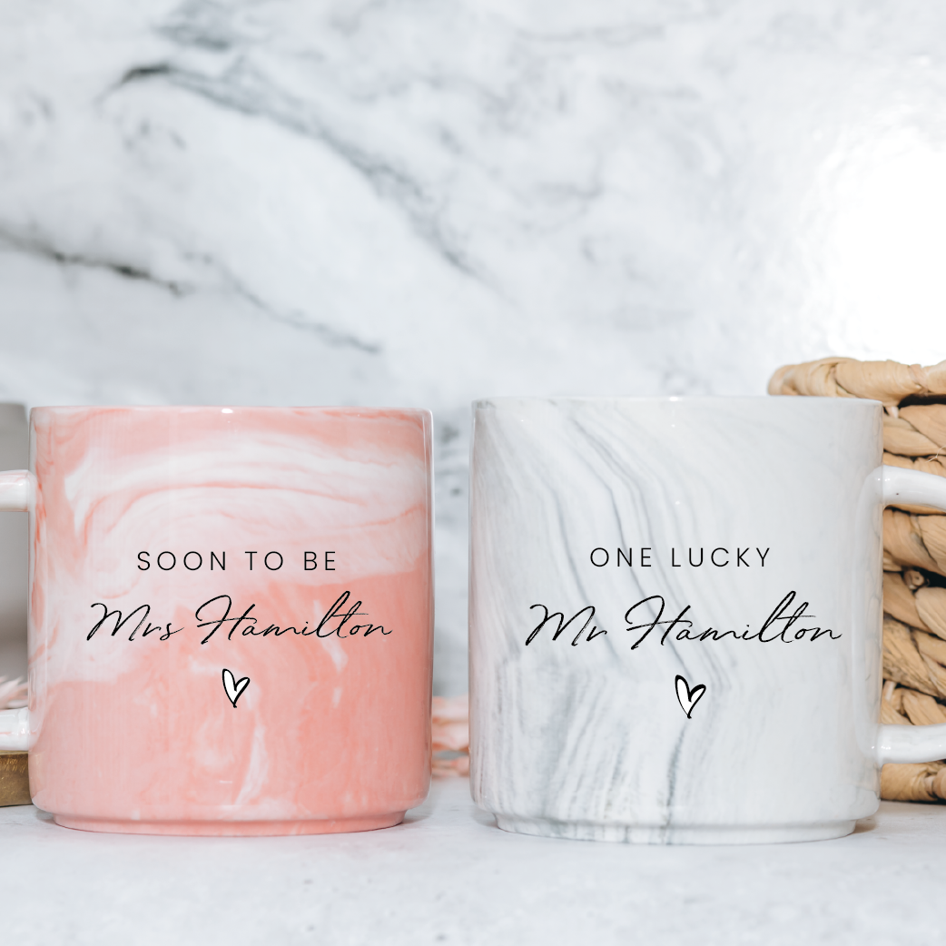 Luxury Luxury The Soon to be Mrs and One Lucky Mr Engagement Gift – Personalised Design by PrintLux — crafted from premium materials and available in a range of sizes. Personalisation and colour options include Grey Marble x1, Grey Marble x2, Pink Blush Marble x1, Pink Blush Marble x2, x1 Pink Blush and x1 Grey Marble.